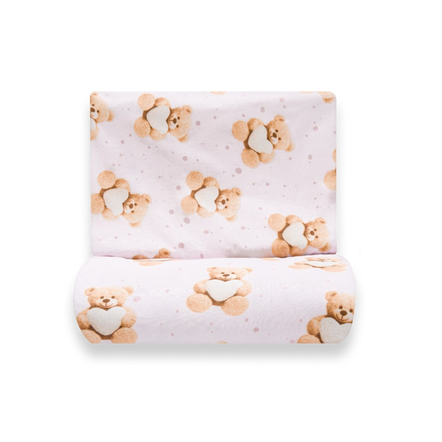 Detská 2-dielna súprava do postieľky New Baby Love Teddy Bear. Súprava je vyrobená zo 100% bavlny. Kvalitné prevedenie a nádherný detský motív. Obsahuje obliečky na vankúšik cca 40x60 cm + obliečky na perinku cca 120x90 cm. Materiál 100% bavlna.