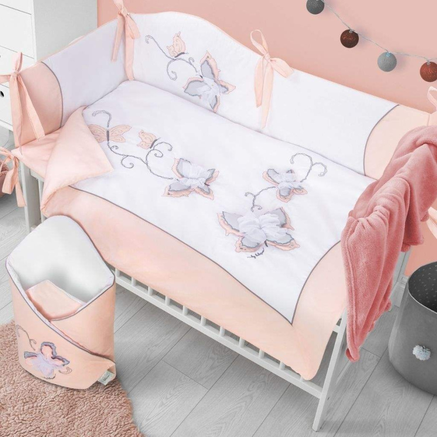 Krásna detská bavlnená 6-dielna súprava do postieľky Belisima Butterfly pre bábätká. Je vyrobená z mäkkého, príjemného materiálu. Súprava obsahuje obliečky na vankúšik cca 40x60 cm, obliečky na paplón cca 100x135 cm, mantinel cca 180 cm, vankůš a paplón, baldachýn. Materiál 100% bavlna.