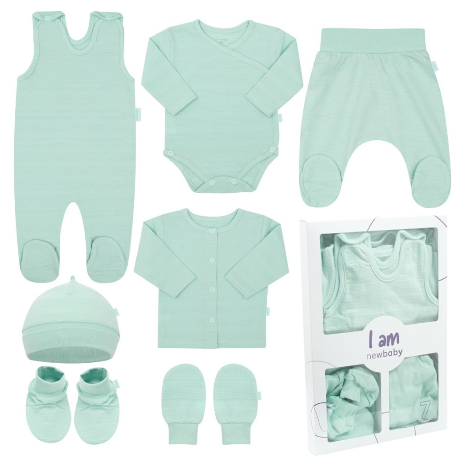7-dielna dojčenská súpravička do pôrodnice New Baby I AM mätová 62 (3-6m)