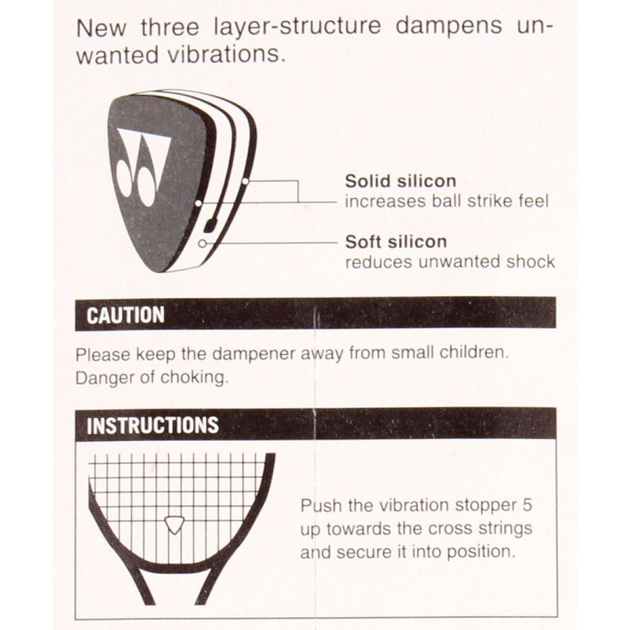 Vibrastopy patria do základnej výbavy každého správneho tenisty. Sú navrhnuté pre znižovanie vibrácií strún, tlmia "zvonivý" zvuk rakiet, a tým prispievajú k väčšiemu komfortu pri hre. Tlmidlo vibrácií Yonex AC 165 je vyrobené z odolnej silikónovej gumy v trojvrstvovej štruktúre pre maximálny výkon. Balenie obsahuje 2 ks vibrastopov.
