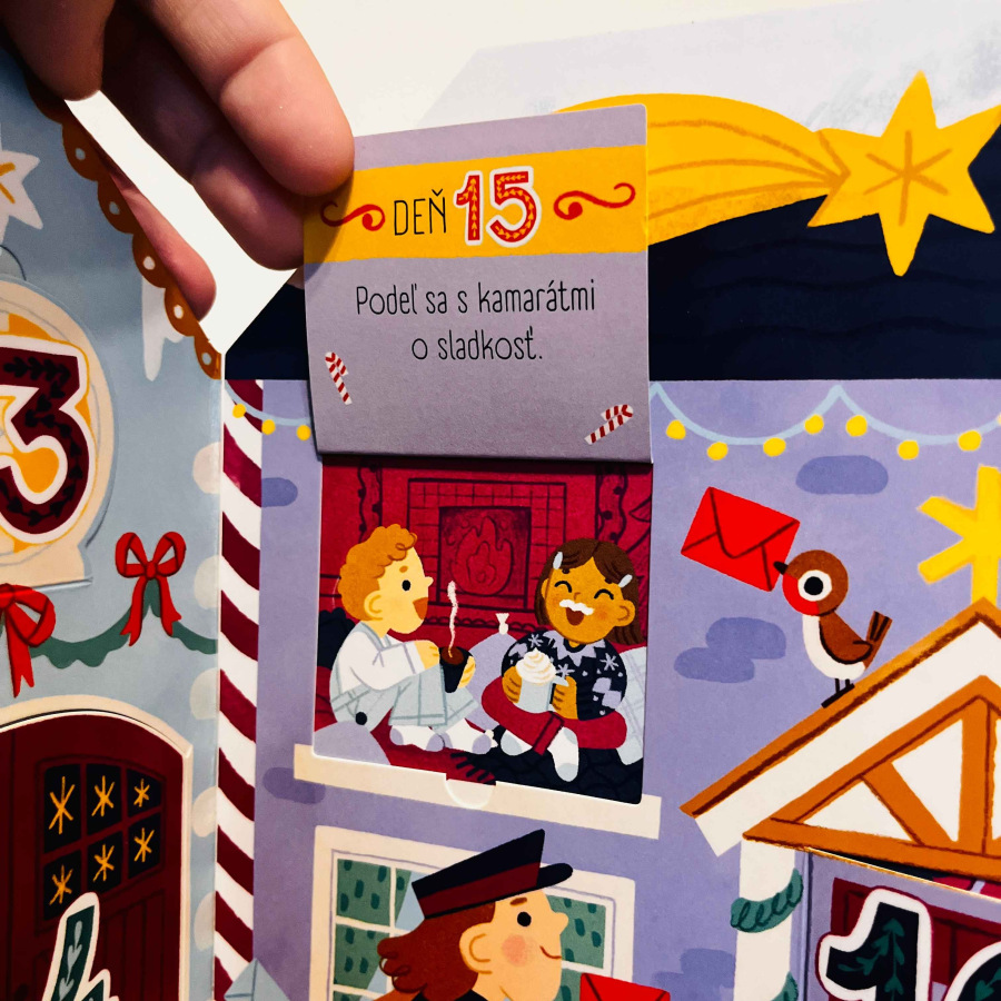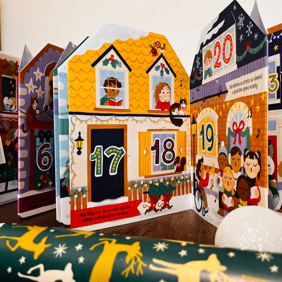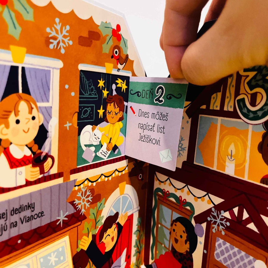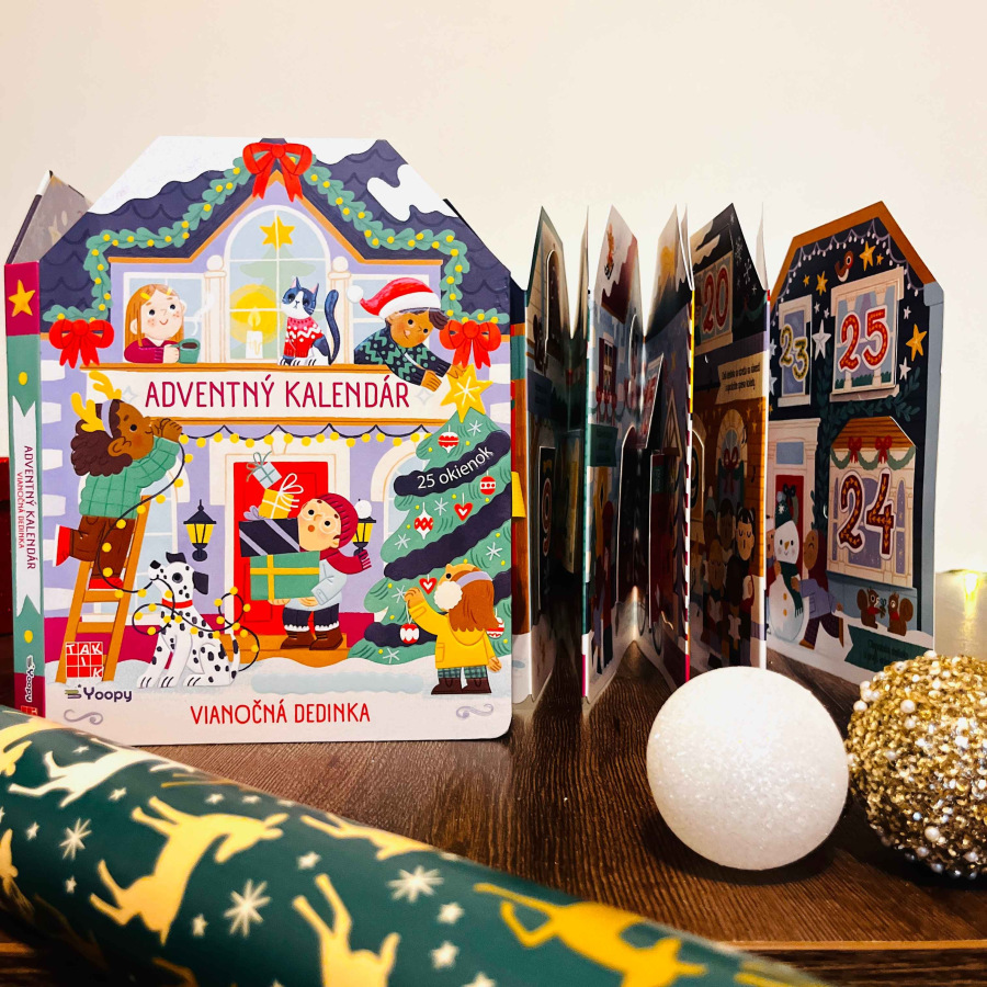 Adventný kalendár – Vianočná dedinka je čarovný príbeh, ktorý sa odohráva v zasneženej dedinke, kde sa každý decembrový deň udeje niečo výnimočné. Od 1. do 25. decembra si deti otvárajú jedno okienko s úlohou alebo príbehovým momentom, ktoré ich povzbudia k tvoreniu, zamysleniu a spoločnému prežívaniu adventného obdobia. Kniha-kalendár hravou formou pripravuje deti na Vianoce a učí ich, že sviatky sú nielen o darčekoch, ale predovšetkým o pomoci, rešpekte, ohľaduplnosti a radostných chvíľach s rodinou.