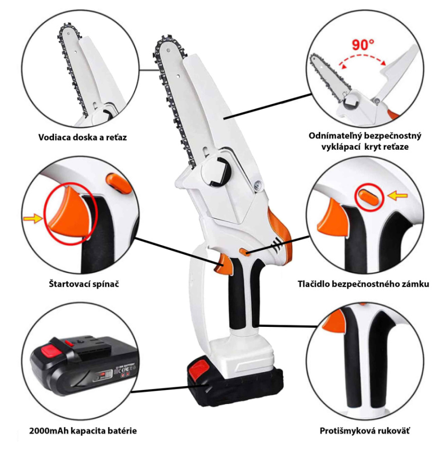 - Ideálna pre orezávanie stromov, prípravu palivového dreva a ďalšie záhradné práce.