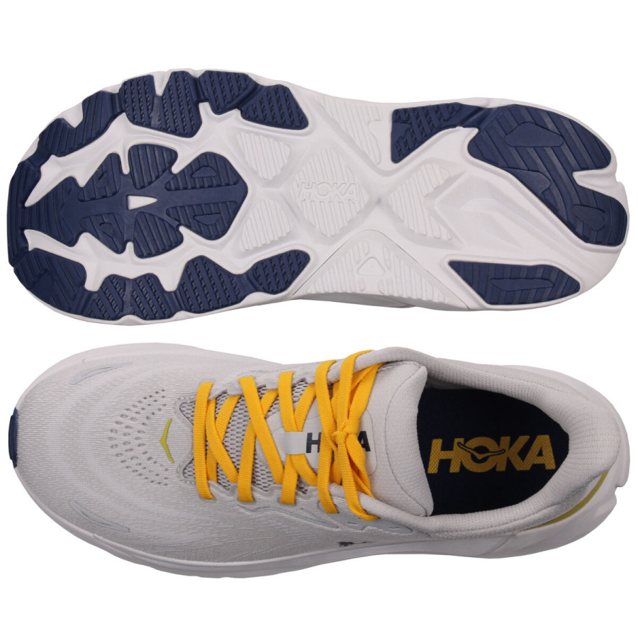 Ôsmy rad bežeckej obuvi s podporou pronácie HOKA ONE ONE® Arahi 8. Oproti minulému radu je na topánke využitá technológia H-frame™ poskytujúca väčšiu stabilitu. Kombinácia maximálneho odpruženia a minimálnej hmotnosti zostala, rovnako tak tvar päty na ochranu Achillovky a priedušný zvršok. Väčšiemu komfortu pri chôdzi a behu pomáha aj vyšší drop 8 mm, lepšie tlmenie, použité mäkšie materiály. Arahi je dynamická a stabilná topánka pre ľahký tréning na cestách a spevnených cestách. - dvojitá žakárová sieťovina