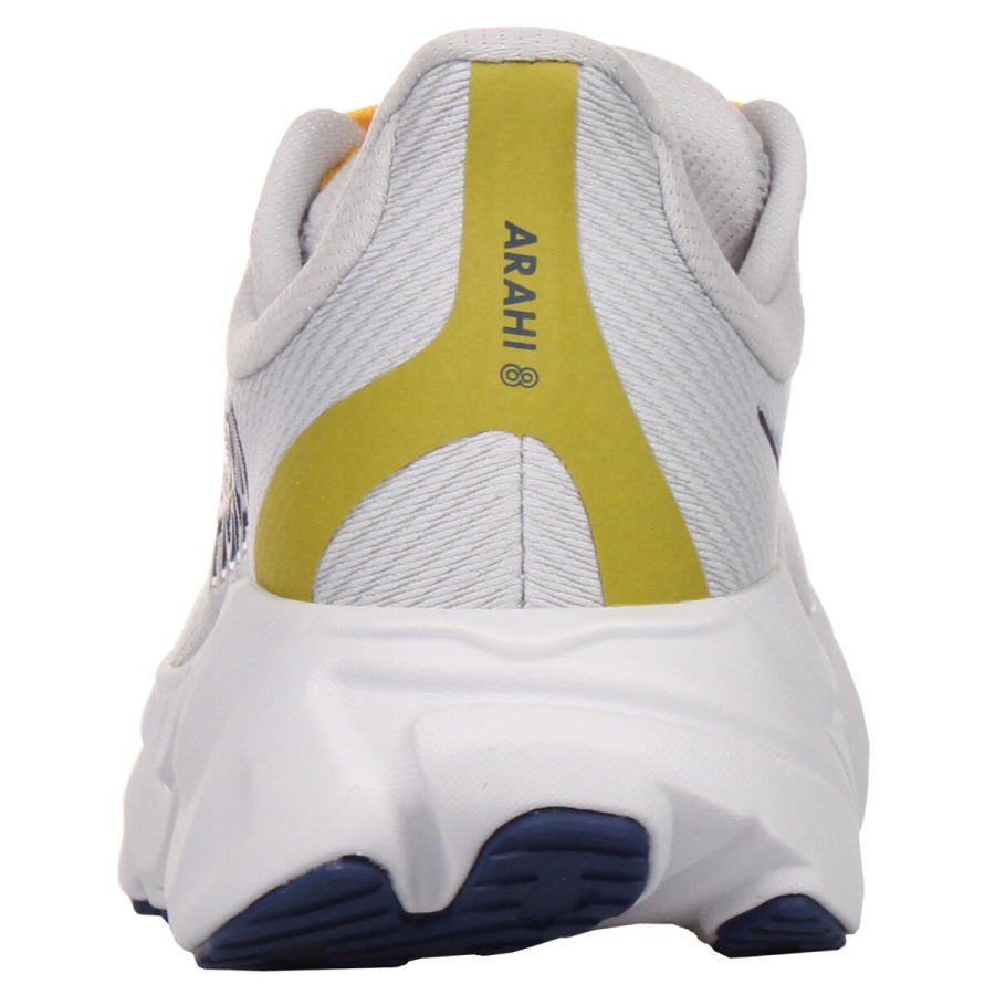Ôsmy rad bežeckej obuvi s podporou pronácie HOKA ONE ONE® Arahi 8. Oproti minulému radu je na topánke využitá technológia H-frame™ poskytujúca väčšiu stabilitu. Kombinácia maximálneho odpruženia a minimálnej hmotnosti zostala, rovnako tak tvar päty na ochranu Achillovky a priedušný zvršok. Väčšiemu komfortu pri chôdzi a behu pomáha aj vyšší drop 8 mm, lepšie tlmenie, použité mäkšie materiály. Arahi je dynamická a stabilná topánka pre ľahký tréning na cestách a spevnených cestách. - dvojitá žakárová sieťovina