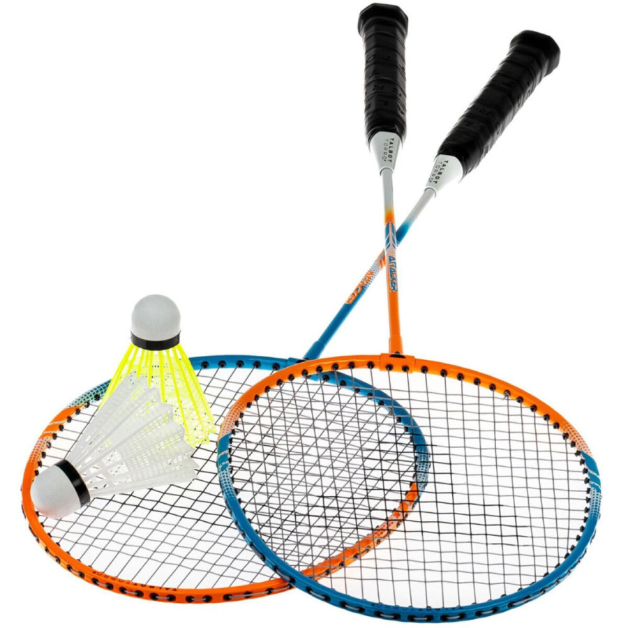 Súprava na bedminton pre dvoch Talbot Torro Attacker je ideálnou voľbou pre začínajúcich a rekreačných hráčov. Bedmintonové rakety sú vyrobené z tvrdenej ocele a loptičky z nylonu s korkovou hlavou. Sada je dodávaná v praktickom obale s popruhom cez rameno. - pre začiatočníkov a rekreačných hráčov
