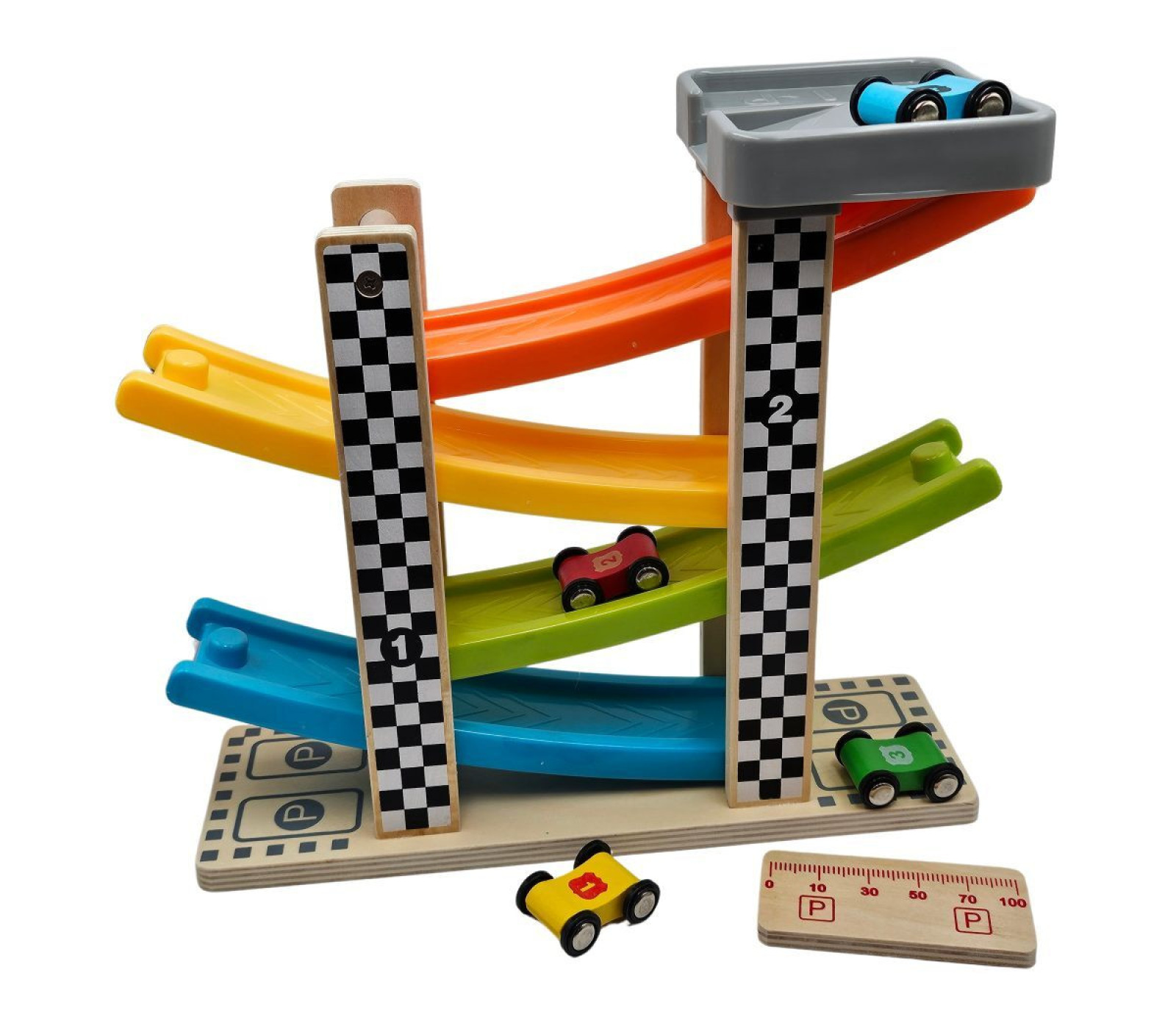 Autíčková dráha, má rozmer 30x25x10 cm. Balenie obsahuje dráhu a štyri autíčka. Cena je za 1 balenie. Vhodné pre deti 3+.