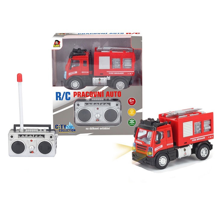 Hasičské auto cisterna na diaľkové ovládanie z kolekcie City collection. Ovládač v dizajne prenosného rádiomagnetofónu. Auto jazdí dopredu, dozadu, vľavo a vpravo. Český box. Mierka 1:64. Vhodné pre deti od 6 rokov. Svetelné efekty.Napájení auto: batérie 2 x 1,5 V AA (nie sú súčasťou balenia), ovládač: batérie 2 x 1,5 V AA (nie sú súčasťou balenia). Auto obsahuje na spodnej strane páčku jemného vyladenie pohybu. Keï sa auto pri jazde vpred vychyľuje na jednu stranu, je moľné touto páčkou smer nastaviť. Rozmery balenia 19 x 16 x 6,5 cm.