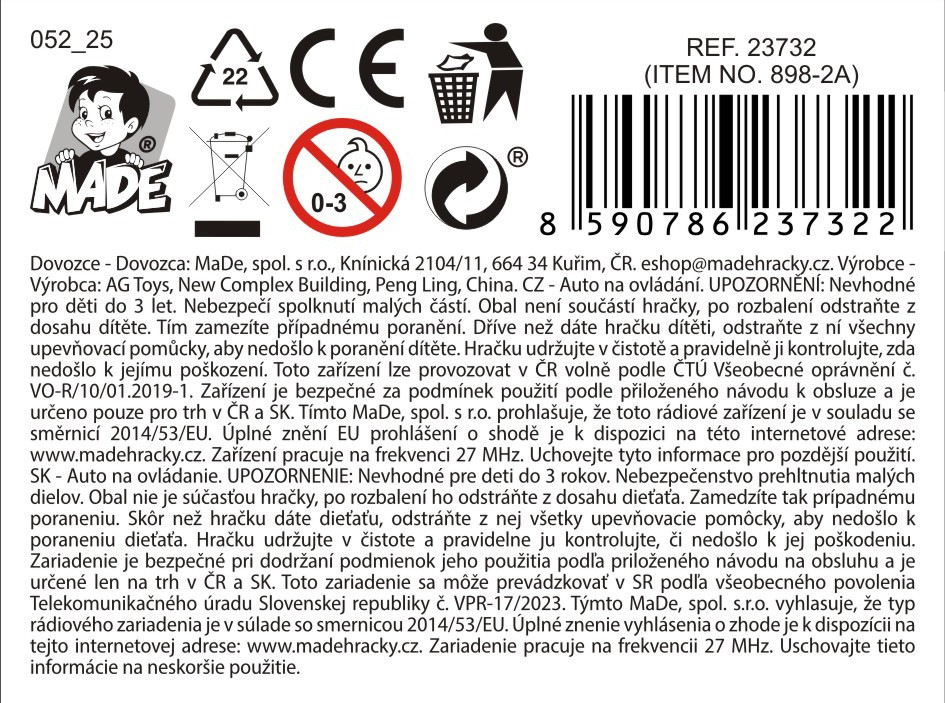 RC pretekárske auto vo veľkosti 1:20 poteší všetkých malých fanúšikov rýchlych áut. Auto má športový dizajn, jednoduché ovládanie a je ideálne na domáce aj vonkajšie jazdenie. Deti si s ním užijú veľa adrenalínu, súťaženia aj kreatívnej hry. Vyžaduje 6 batérií typu AA pre plný výkon.