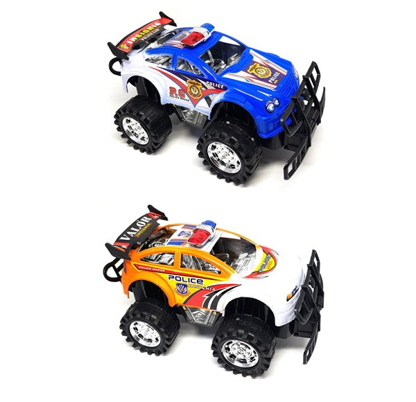 Auto policajné, 20 cm veľké na zotrvačník, v ponuke je v oranžovej alebo modrej farbe. Cena za kus.
