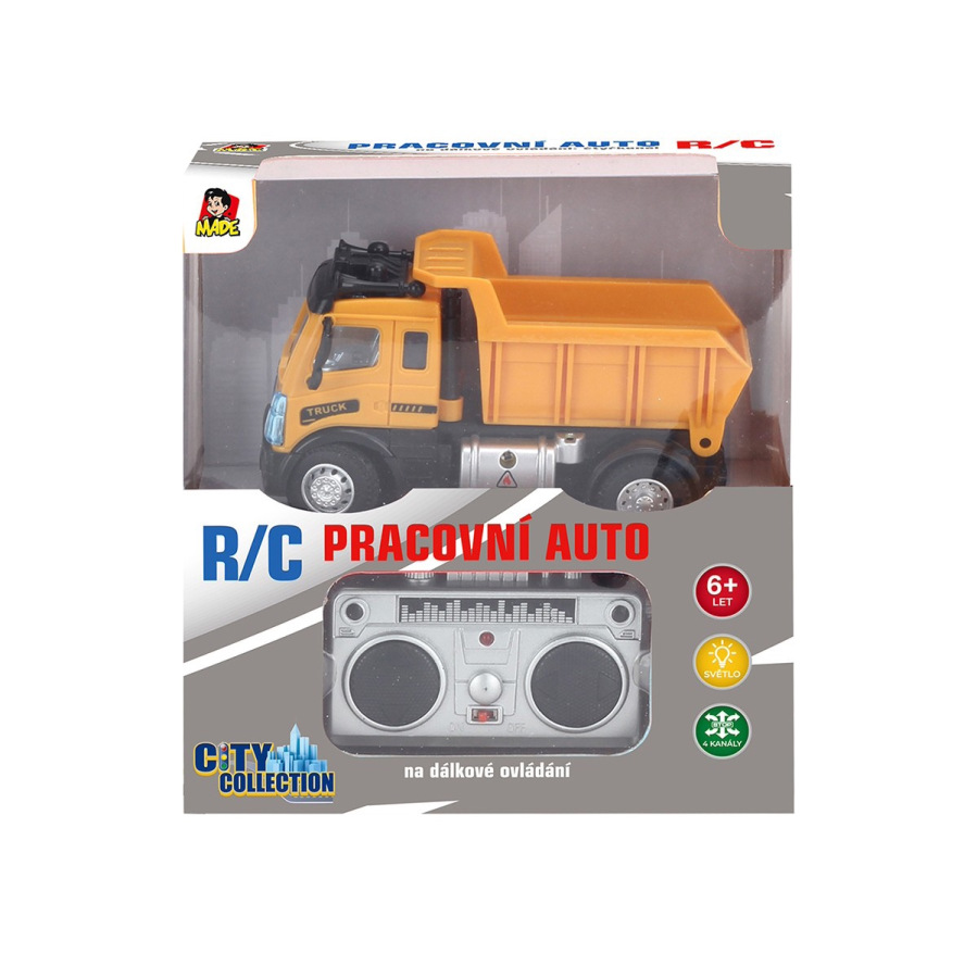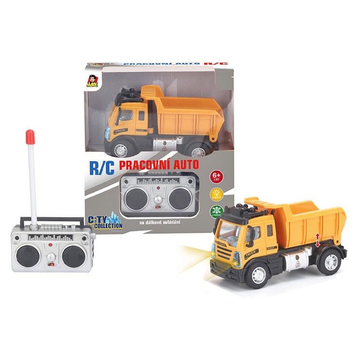 Auto stavebné na diaľkové ovládanie z kolekcie City collection. Ovládač v dizajne prenosného rádiomagnetofónu. Auto jazdí dopredu, dozadu, vľavo a vpravo. Český box. Mierka 1:64. Vhodné pre deti od 6 rokov. Svetelné efekty.Napájení auto: batérie 2 x 1,5 V AA (nie sú súčasťou balenia), ovládač: batérie 2 x 1,5 V AA (nie sú súčasťou balenia). Auto obsahuje na spodnej strane páčku jemného vyladenie pohybu. Keï sa auto pri jazde vpred vychyľuje na jednu stranu, je moľné touto páčkou smer nastaviť. Rozmery balenia 19 x 16 x 6,5 cm.