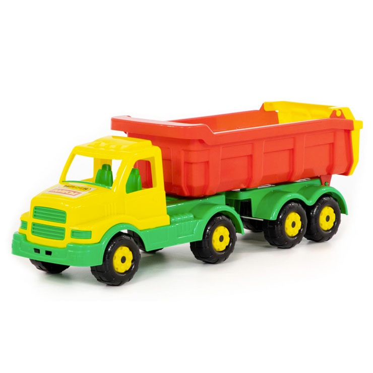 Auto Stopár s návesom je vyrobené z pevného plastu, je 58 cm dlhé, bez pohonu, s korbu je možné vyklápať do zadu, zadné čelo je pohyblivé. Hračka je vyrobená v triede Wader quality toys.
