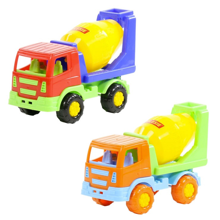 Nákladné auto domiešavač bez pohonu, vhodný na hru do interiéru aj na piesok, certifikovaný pre deti od 1 roku veku. Farebnú kombináciu konzultujte podľa aktuálneho stavu na sklade.