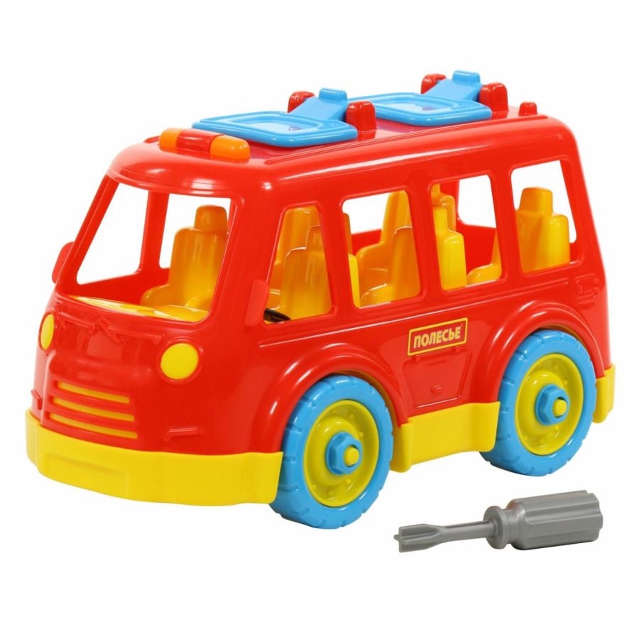Autobus na skrutkovanie je 27 cm veľký, bez pohonu, vhodný je pre deti od 3 rokov. Pomocou priloženého skrutkovača ho môže malý mechanik rozobrať a opäť poskladať.Vyrobený je v nadštandardnej kvalite. Cena je za kus. Dostupné farebné kombinácie sú podľa aktuálneho stavu na sklade.