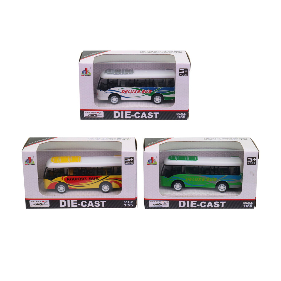 Autobus na spätné natiahnutie, má rozmer 9 cm. Na výber z piatich variánt. Balené v boxe po 24 ks. Cena je za 1 ks. Vhodné pre deti 3+.