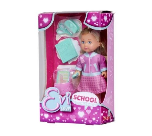 Bábika Evička s doplnkami do školy prinesie deťom zábavnú hru na školské prostredie a učenie. Súčasťou balenia je bábika a školské pomôcky ako zošit, aktovka, peračník, pero, nožničky a učebnica, vďaka ktorým si deti môžu vytvárať vlastné príbehy zo školy. Bábika má veľkosť približne 12 cm a hra podporuje fantáziu, kreativitu aj sociálne zručnosti.