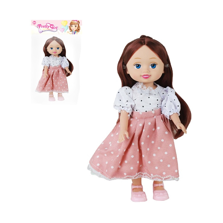Krásna Bábika v romantických bodkovaných šatách. Rozmer bábiky je 25cm.