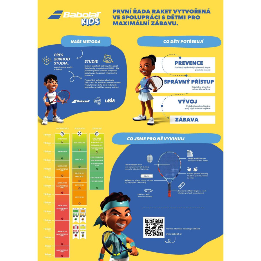 Detská raketa Babolat Ballfighter 19 je vhodná pre začínajúcich hráčov s výškou postavy 95 - 110 cm. Ľahká alumíniová konštrukcia umožňuje ľahkú hrateľnosť rakety. Raketa využíva dva prvky pre výučbu: Learning tool 01 - memo grip - učí dieťa držať raketu na konci rukoväte; Learning tool 02 - right attitude - učí držať raketu v správnej polohe. Súčasťou rakety je aj obal s popruhom na pohodlné nosenie. Pre kvalitný tréning použite aj tréningové loptičky Red. Parametre: