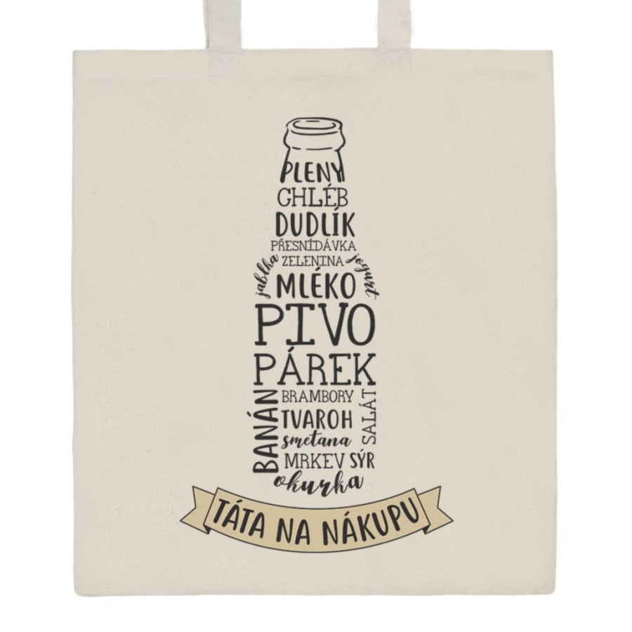 Bavlnená nákupná taška prírodná s potlačou New Baby Táta na nákupu