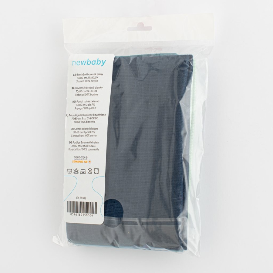 Bavlnené detské plienky New Baby sú nepostrádateľnou súčasťou výbavičky pre bábätko. Balenie obsahuje 3 ks. Vhodne zvolené farby pre chlapčekov. Plienky sú vyrobené zo 100% bavlny. Sú hygienické, nespôsobujú alergickú reakciu a napomáhajú zdravému vývoju bedrových kĺbov u novorodencov. Môžete ich využívať nielen na prebaľovanie ale aj pod hlavičku bábätka v postieľke či kočíku. Vysoká kvalita spracovania.