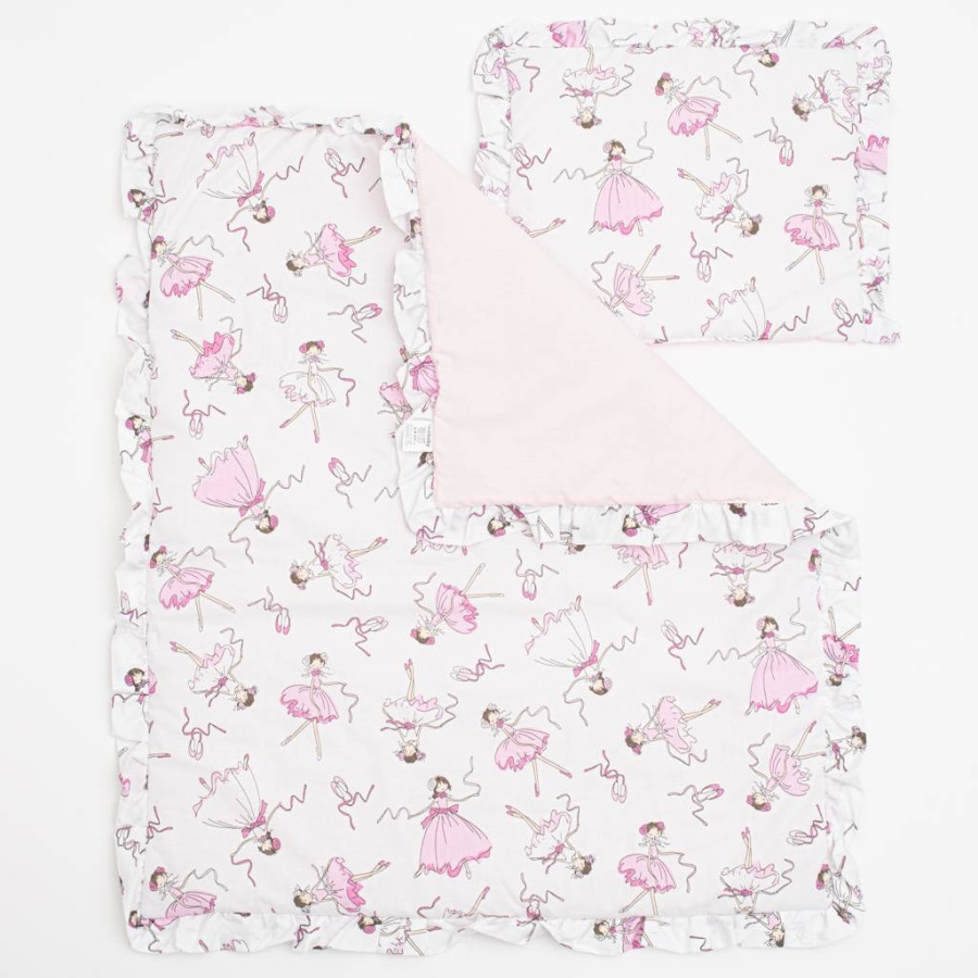Nádherný bavlnený set do kočíka New Baby Ballerina Bella. Set obsahuje vankúšik a perinku s volánikom a potlačou rozprávkovej tancujúcej baletky. Všetko je vyplnené antialergickým vláknom. Set je ušitý z vysoko kvalitnej bavlny. Bavlnený set luxusne a jemne pohladí a zahreje pokožku vášho bábätka. Rozmery: vankúš: cca 32x25 cm, perinka: cca 82x68 cm. Zloženie: povlak 100% bavlna, výplň 100% polyester.