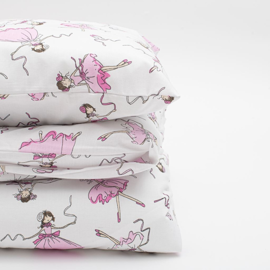 Nádherný bavlnený set do postieľky New Baby Ballerina Bella. Set obsahuje vankúšik a perinku s potlačou rozprávkovej tancujúcej baletky. Všetko je vyplnené antialergickým vláknom. Set je ušitý z vysoko kvalitnej bavlny. Bavlnený set luxusne a jemne pohladí a zahreje pokožku vášho bábätka. Rozmery: vankúš: cca 60x40 cm, perinka: cca 90x120 cm. Zloženie: povlak 100% bavlna, výplň 100% polyester.