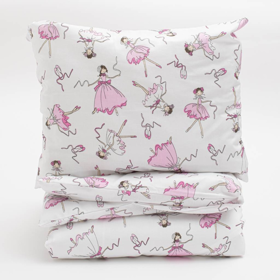 Nádherný bavlnený set do postieľky New Baby Ballerina Bella. Set obsahuje vankúšik a perinku s potlačou rozprávkovej tancujúcej baletky. Všetko je vyplnené antialergickým vláknom. Set je ušitý z vysoko kvalitnej bavlny. Bavlnený set luxusne a jemne pohladí a zahreje pokožku vášho bábätka. Rozmery: vankúš: cca 60x40 cm, perinka: cca 90x120 cm. Zloženie: povlak 100% bavlna, výplň 100% polyester.