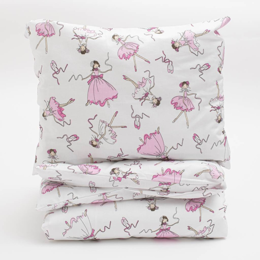 Nádherný bavlnený set do postieľky New Baby Ballerina Bella. Set obsahuje vankúšik a perinku s potlačou rozprávkovej tancujúcej baletky. Všetko je vyplnené antialergickým vláknom. Set je ušitý z vysoko kvalitnej bavlny. Bavlnený set luxusne a jemne pohladí a zahreje pokožku vášho bábätka. Rozmery: vankúš: cca 60x40 cm, perinka: cca 90x120 cm. Zloženie: povlak 100% bavlna, výplň 100% polyester.