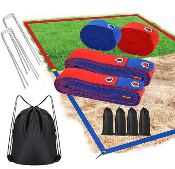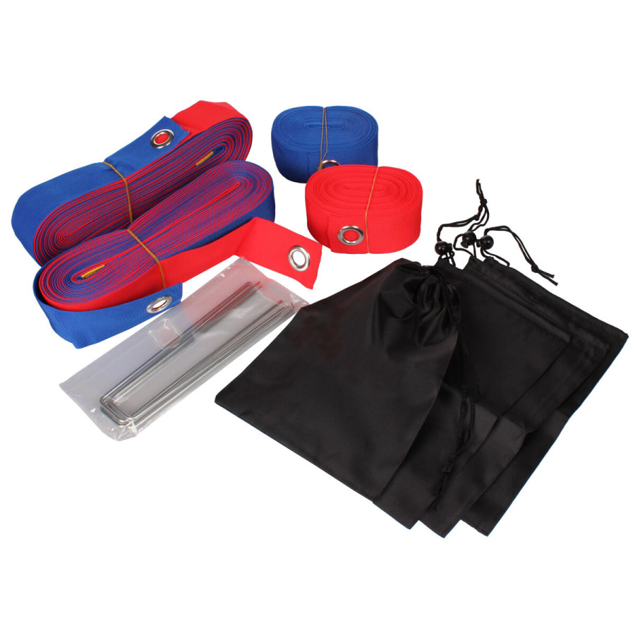 Vytvorte si ihrisko pre svoj beachvolejbalový zápas počas chvíľky so sadou Merco Beach Tour. Túto sadu v modro-červenej farbe tvoria dve lajny s dĺžkou 8 m, dve lajny s dĺžkou 16 m, štyri kovové kotvy a štyri prázdne polyesterové vrecká na piesok, ktoré spoľahlivo udržia lajny na mieste aj pri intenzívnej hre. Montáž je jednoduchá a zvládne ju každý behom pár minút. Celá sada je dodávaná v praktickom polyesterovom sáčku. - materiál: tkaný PE