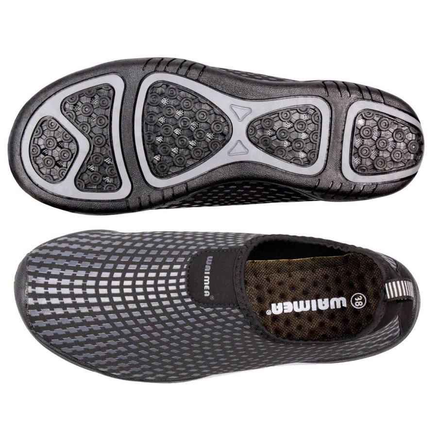 Topánky k vode a do vody Waimea Blacktip ponúkajú dokonalú kombináciu pohodlia, funkčnosti a štýlu! Či idete plávať, šnorchlovať, jazdiť na paddleboarde či v kánoe, alebo sa len chcete prejsť po pláži, tieto topánky do vody ponúkajú dokonalú ochranu a priľnavosť. Topánky do vody Waimea majú vodopriepustnú podrážku, ktorá umožňuje rýchly odtok vody a udržuje vaše nohy v suchu a pohodlí. Už žiadne chodenie v ťažkých, premočených topánkach. A pevná protišmyková podrážka vám zaistí dostatočnú priľnavosť aj na klzkom povrchu. Zvršok z lycry zaisťuje dokonalé prispôsobenie a priedušnosť. Ponúka flexibilitu a voľnosť pohybu, takže sa môžete bez námahy pohybovať vo vode aj na pláži. Lycra navyše rýchlo schne, takže vaše topánky do vody budú pripravené na ďalšie dobrodružstvo. Tento model má aj praktické pútko na sťahovanie v zadnej časti. Dobre odpružená podrážka topánky do vody poskytuje maximálne pohodlie pri každom kroku, čím znižuje únavu a nepohodlie aj pri dlhodobom používaní. - materiál: lycra + TPR