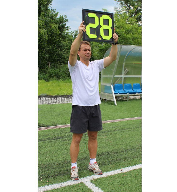 Mechanická tabuľa na striedanie Merco Board je veľmi obľúbená medzi trénermi. Číslice sú natreté reflexnými farbami. Z jednej strany sú natreté na žlto, druhá strana na oranžovo, takže sú skvele vidieť aj z veľkej diaľky. Vďaka novému rotačnému systému, ktorý si značka Merco nechala patentovať, nastavíte mechanicky číslice za veľmi krátku dobu. 43,5 x 37,5 x 2 cm