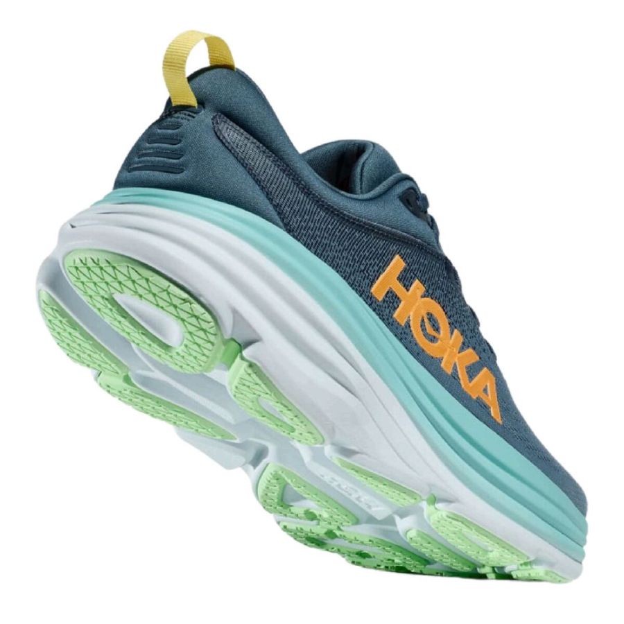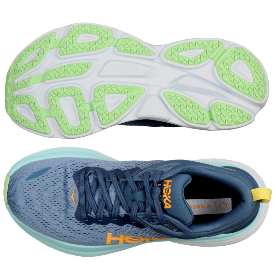 Ôsma séria jedného z najpohodlnejších modelov HOKA ONE ONE® na ceste a spevnené cesty. Bondi 8 je prepracovaná s mäkšími, ľahšími penami a úplne novou rozšírenou geometriou päty. Zadná nárazová podložka poskytuje neuveriteľne mäkký a vyvážený došľap. Pod špičkou topánky sa nachádza 29 mm a pod pätou 33 mm tlmiaceho materiálu. Kombinácia vysokého objemu a nízkej hmotnosti je umožnená použitím moderných technológií výrobcu Meta-Rocker a komprimovanej EVA peny schopnej držať dlhodobo svoj pôvodný tvar. Zvršok obuvi je ušitý z priedušnej, syntetickej a bezšvovej textílie so sofistikovane umiestnenými ventilačnými prieduchmi pre vylepšenú priedušnosť. Spodná podošva s 5 mm hlbokou vzorkou má strategicky spevnené miesta z došľapovej a odrazovej zóny s ešte 2 mm hrubou oderuvzdornou vrstvou. Vďaka vynikajúcemu odpruženiu je táto topánka skvelou voľbou pre bežcov, ktorí hľadajú maximálne pohodlie pre svoj každodenný tréning.