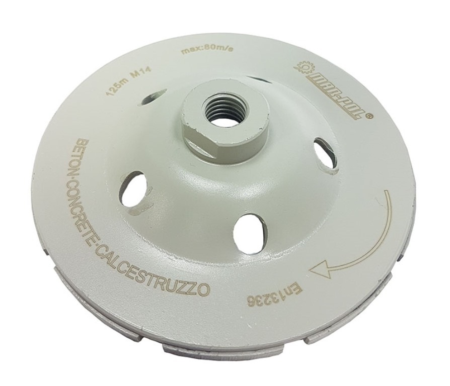 Moderné postupy tepelného spracovania a špeciálna povrchová úprava znižujú opotrebenie kotúča a zvyšujú trvanlivosť. Kotúč je ideálny na odstránenie nerovností, formovanie a brúsenie veľkých betónových povrchov.