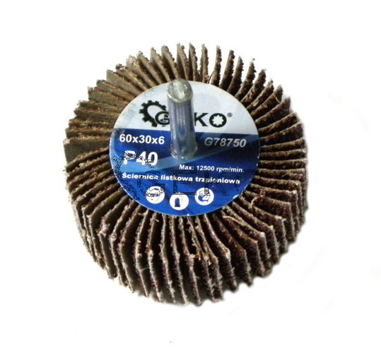 Brúsny kotúč bol vyrobený s použitím listov z bavlnených vlákien s abrazívom vo forme aluminy spojenej so syntetickou živicou. Listy sú trvalo pripevnené k tŕňu s priemerom 6 mm. Ideálne na brúsenie dreva, kovu, plastov atď.