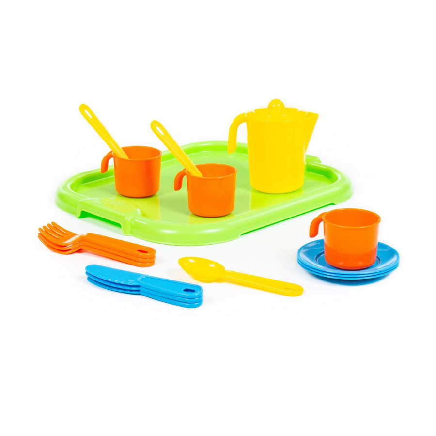 Čajový set pre troch s táckou, má rozmery 615х270х465 mm. Cena je za kus. Vhodné pre deti vo veku 3+ rokov.