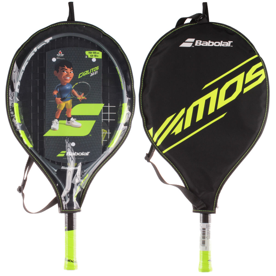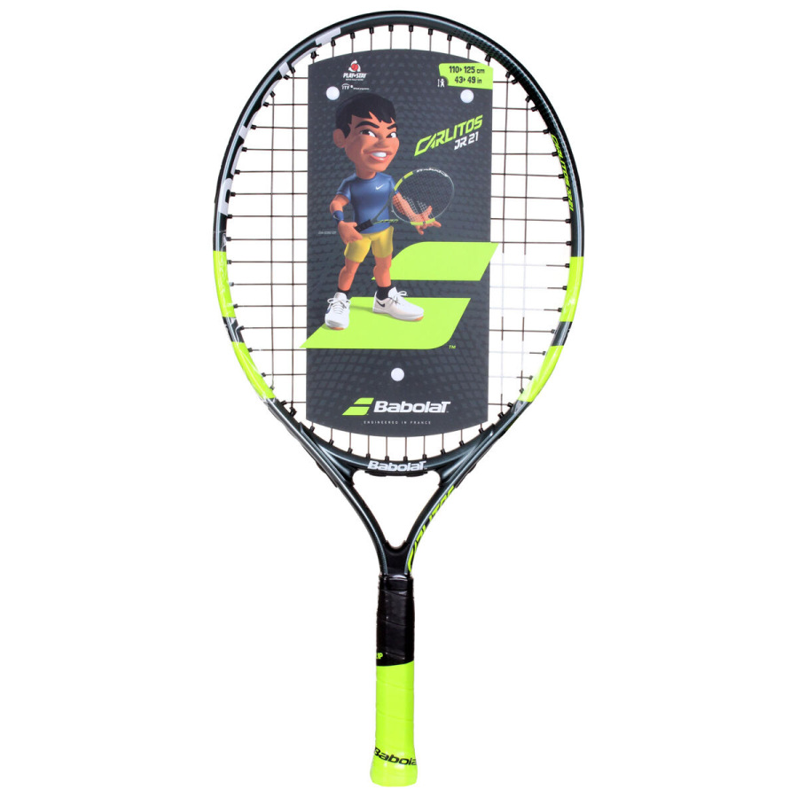 Detská raketa Babolat Carlitos JR 21 inšpirovaná šampiónom Carlosom Alcarazom je vhodná pre začínajúcich hráčov s výškou postavy 110 - 125 cm. Alumíniová konštrukcia umožňuje ľahkú hrateľnosť rakety. Raketa využíva dva prvky pre výučbu: Learning tool 01 - memo grip - učí dieťa držať raketu na konci rukoväte; Learning tool 02 - right attitude - učí držať raketu v správnej polohe.Súčasťou rakety je aj obal s popruhom na pohodlné nosenie.. - dĺžka: 21 in / 533 mm