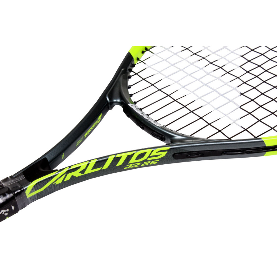 Detská raketa Babolat Carlitos JR 26 inšpirovaná šampiónom Carlosom Alcarazom je vhodná pre začínajúcich hráčov s výškou postavy 145 - 155 cm. Ľahká alumíniová konštrukcia umožňuje ľahkú hrateľnosť rakety. Raketa využíva dva prvky pre výučbu: Learning tool 01 - memo grip - učí dieťa držať raketu na konci rukoväte;Learning tool 02 - right attitude - učí držať raketu v správnej polohe.Súčasťou rakety je aj obal s popruhom na pohodlné nosenie. - dĺžka: 26 in / 660 mm