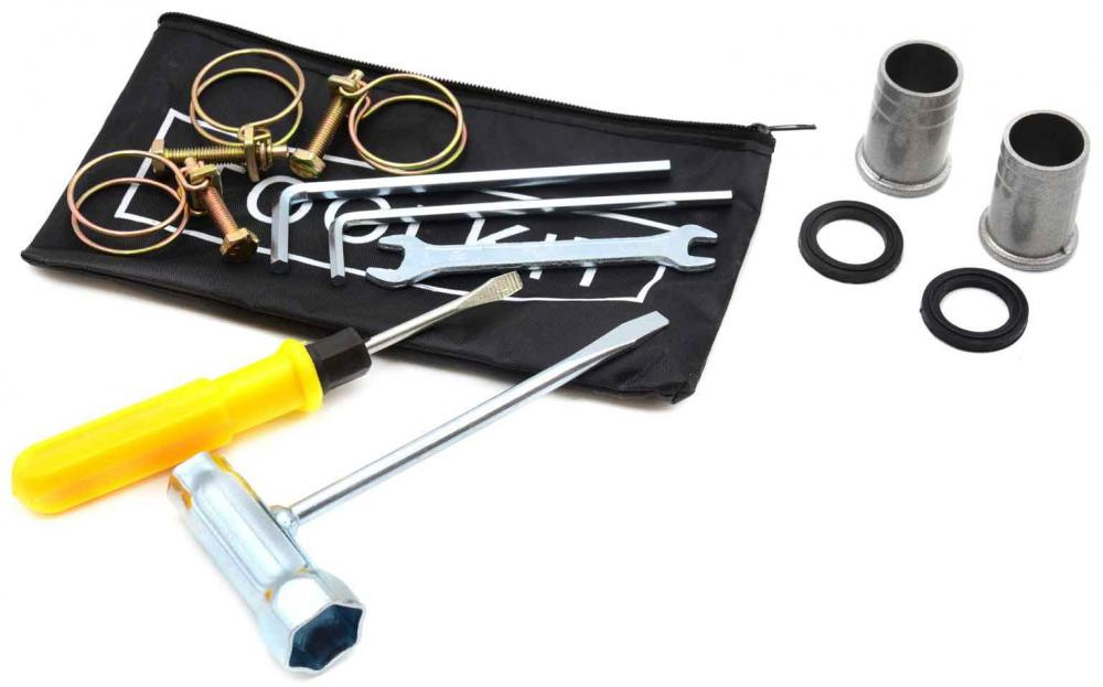 Sada obsahuje kovové, skrutkovacie prípojky na pripojenie hadíc s priemerom 1 ". Čerpalo je upevnené na kovovej základni s ľahkým prístupom k ovládacím prvkom zariadenia.