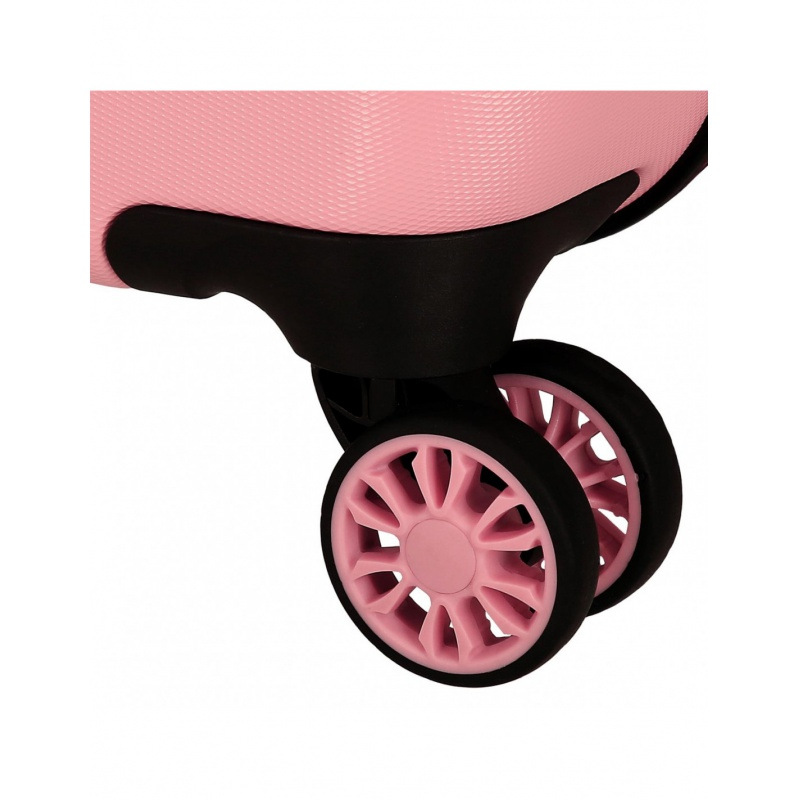 Detský cestovný kufor z kolekcie Minnie Heads zaujme na prvý pohľad elegantným ružovým prevedením a výrazným motívom Minnie Mouse. Nadčasový dizajn robí z kufra štýlový doplnok, ktorý si deti okamžite obľúbia.