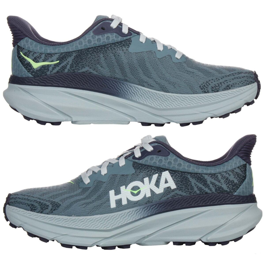 Bežecká obuv Hoka One One Challenger 7 je navrhnutá pre tréning na pomedzí cesty a trailu. Tvar podošvy Meta-Rocker spoločne s 5 mm dropom a 4 mm vzorom vonkajšej podošvy sa postará o komfortný nášľap a trakciu v každom teréne. Kombinuje zjednodušený zvršok zo sieťoviny s novou mäkkou penou a oproti predchádzajúcim modelom bola tiež zvýšená výška tlmiaceho materiálu pre lepší pocit. Tomu prispieva aj prepracovaný dizajn podošvy s patentovanou gumou. Spoločnosť Hoka uprostred vymodelovala menšie, husto rozmiestnené výstupky a po obvode väčšie, agresívnejšie výstupky určené pre lepšiu trakciu na nerovnom teréne. Najviac namáhané miesta na špičke a na päte sú spevnené pre väčšiu podporu a odolnosť. Pokiaľ hľadáte najuniverzálnejší model značky Hoka pre váš bežný tréning, potom je model Challenger ATR tou správnou voľbou.