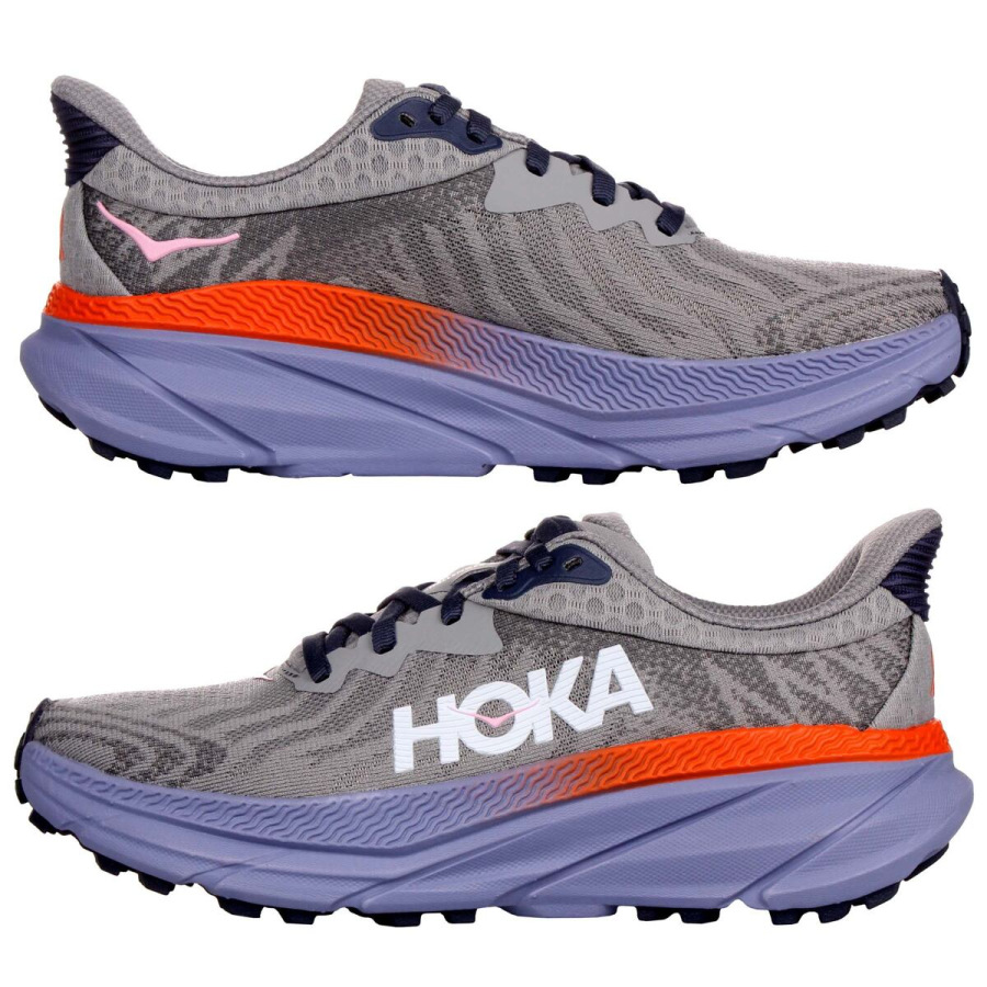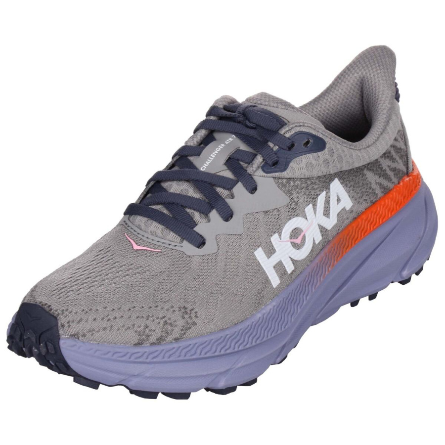 Bežecká obuv Hoka One One Challenger 7 je navrhnutá pre tréning na pomedzí cesty a trailu. Tvar podošvy Meta-Rocker spoločne s 5 mm dropom a 4 mm vzorom vonkajšej podošvy sa postará o komfortný nášľap a trakciu v každom teréne. Kombinuje zjednodušený zvršok zo sieťoviny s novou mäkkou penou a oproti predchádzajúcim modelom bola tiež zvýšená výška tlmiaceho materiálu pre lepší pocit. Tomu prispieva aj prepracovaný dizajn podošvy s patentovanou gumou. Spoločnosť Hoka uprostred vymodelovala menšie, husto rozmiestnené výstupky a po obvode väčšie, agresívnejšie výstupky určené pre lepšiu trakciu na nerovnom teréne. Najviac namáhané miesta na špičke a na päte sú spevnené pre väčšiu podporu a odolnosť. Pokiaľ hľadáte najuniverzálnejší model značky Hoka pre váš bežný tréning, potom je model Challenger ATR tou správnou voľbou.