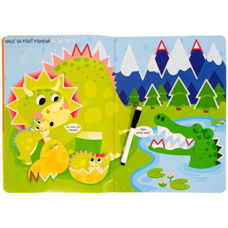 Knižka s pevnými lesklými stránkami a stierateľnou fixkou pripraví pomocou rôznych cvičení vášho predškoláka na písanie písmen. Deti obťahujú čiary, píšu písmená, potom všetko zmažú a začnú znova. Hravé obrázky nabádajú na obťahovanie rovných, kľukatých aj zakrivených čiar, ktoré v sebe nápadne ukrývajú aj písmená. Zošit je vhodný pre deti, ktoré sa učia prvé ťahy aj detailnejšie linky a prvé písmená. Nemusia sa báť chýb — stačí zmazať a skúsiť znova.
