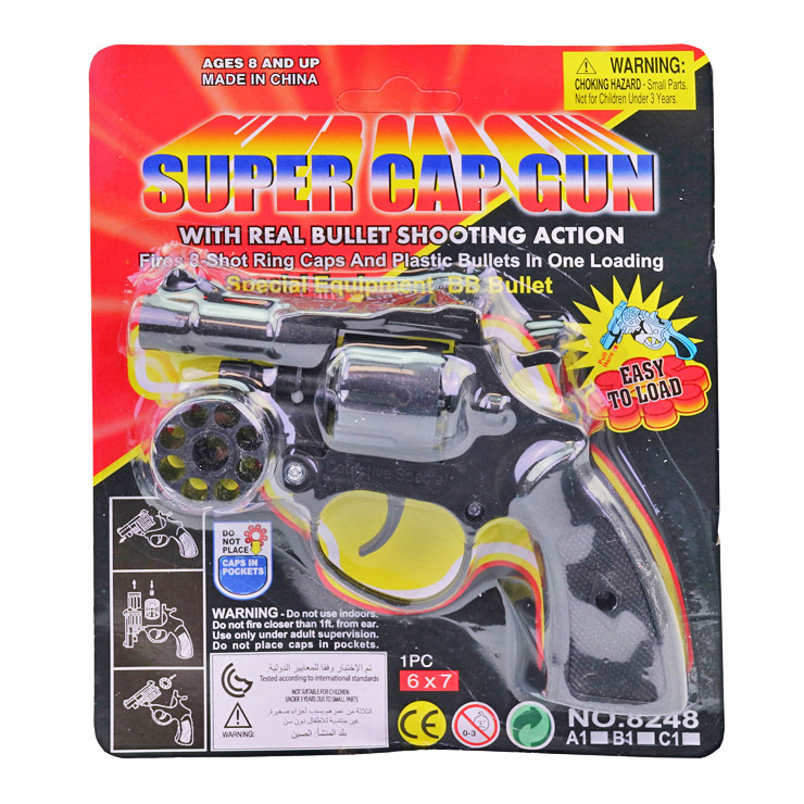 Čierna strielajúca pištoľ, má rozmery 16x15x2 cm. Cena za 1 kus. Vhodné pre deti 8+.