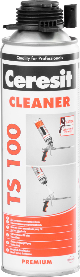 Čistič PU peny Ceresit TS 100 je určený na odstránenie čerstvých penových škvŕn a na čistenie aplikačných pištolí.