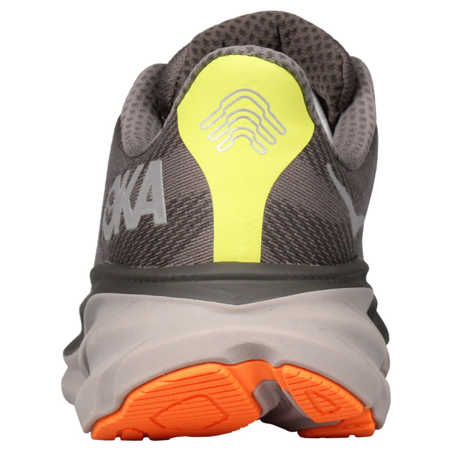 Deviaty rad oceňovanej série Clifton značky Hoka One One, ľahší a tlmenejší ako kedykoľvek predtým. Nový model Clifton 9 s GORE-TEX úpravou, ktorý eliminuje hmotnosť a zároveň pridáva 3 mm výšky tlmiaceho materiálu, prináša väčší komfort pri tréningu vďaka novej citlivej pene a vylepšenému dizajnu podošvy. Dokonalá kombinácia nízkej hmotnosti a odpruženia. Topánka využíva geometriu HOKA® Meta-Rocker podošvou, ktorá zaručuje konzistentné tlmenie každého došľapu počas celej doby behania a plynulý pohyb vpred vďaka kolískovito tvarovanej medzipodrážke, doplnenej priedušným zvrškom z vrstvenej sieťoviny. Clifton 9 majú drop 5 mm s 32 mm tlmiaceho materiálu pod pätou a 27 mm pod špičkou. Disponujú vylepšenou výstuhou päty pre ľahšie nasadzovanie a zvýšenú podporu. Posuňte svoje limity a spríjemnite si svoj tréning s topánkami Hoka One One. Clifton 9:
