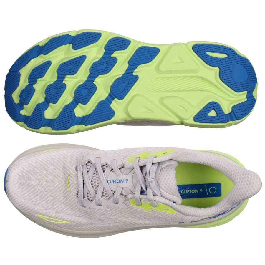 Deviata séria oceňovanej série Clifton značky Hoka One One, ľahší a s tlmenejší než kedykoľvek predtým. Nový model Clifton 9, ktorý eliminuje hmotnosť a zároveň pridáva 3 mm výšky tlmiaceho materiálu, prináša väčší komfort pri tréningu vďaka novej citlivej pene a vylepšenému dizajnu podošvy. Dokonalá kombinácia nízkej hmotnosti a odpruženia. Topánka využíva geometriu HOKA® Meta-Rocker podošvou, ktorá zaručuje konzistentné tlmenie každého došľapu počas celej doby behania a plynulý pohyb vpred vďaka kolískovito tvarovanej medzipodrážke, doplnenej priedušným zvrškom z vrstvenej sieťoviny. Clifton 9 majú drop 5 mm s 32 mm tlmiaceho materiálu pod pätou a 27 mm pod špičkou. Disponujú vylepšenou výstuhou päty pre ľahšie nasadzovanie a zvýšenú podporu. Posuňte svoje limity a spríjemnite si svoj tréning s topánkami Hoka One One. Clifton 9: