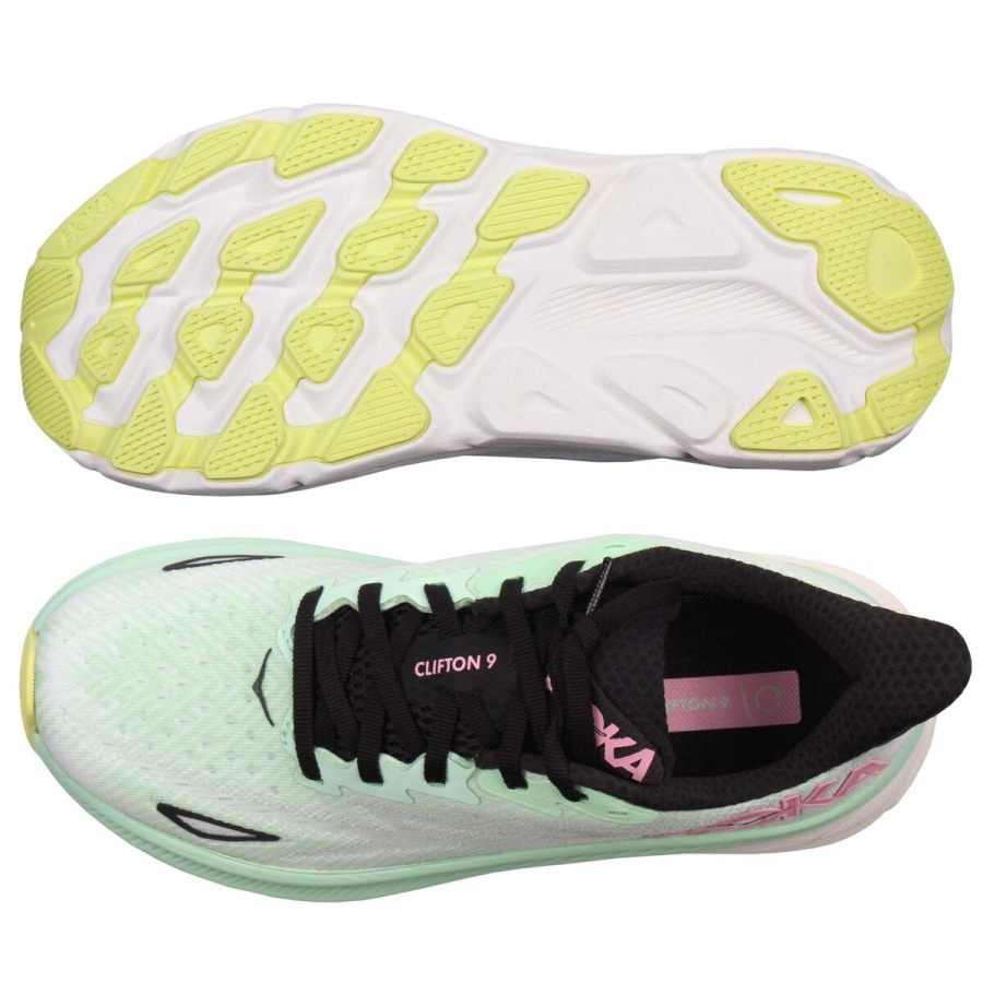 Deviata séria oceňovanej série Clifton značky Hoka One One, ľahší a s tlmenejší než kedykoľvek predtým. Nový model Clifton 9 W, ktorý eliminuje hmotnosť a zároveň pridáva 2 mm výšky tlmiaceho materiálu, prináša väčší komfort pri tréningu vďaka novej citlivej pene a vylepšenému dizajnu podošvy. Dokonalá kombinácia nízkej hmotnosti a odpruženia. Topánka využíva geometriu HOKA® Meta-Rocker podošvou, ktorá zaručuje konzistentné tlmenie každého došľapu počas celej doby behania a plynulý pohyb vpred vďaka kolískovito tvarovanej medzipodrážke, doplnenej priedušným zvrškom z vrstvenej sieťoviny. Clifton 9 W majú drop 5 mm s 29 mm tlmiaceho materiálu pod pätou a 24 mm pod špičkou. Disponujú vylepšenou výstuhou päty pre ľahšie nasadzovanie a zvýšenú podporu. Posuňte svoje limity a spríjemnite si svoj tréning s topánkami Hoka One One. Clifton 9: