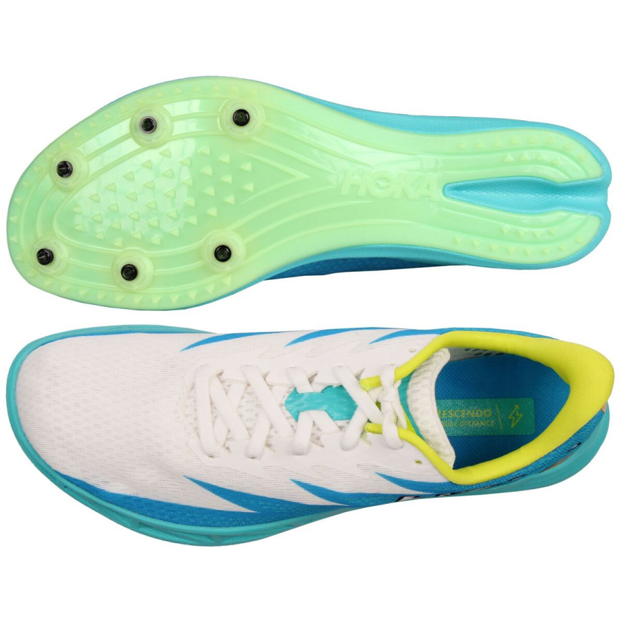 Unisex bežecké tretry Crescendo MD značky HOKA ONE ONE® sú priamo stvorené pre rýchlosť. Tieto ultraľahké, ale pritom odolné tretry vám pri tréningu či závode poskytnú potrebnú podporu a stabilitu, aby ste dosiahli svoje najlepšie výsledky! Tretry Crescendo MD sú vyrobené s priedušným zvrškom, pevnou podrážkou so šiestimi hrotmi. Konštrukcia týchto topánok poskytuje bežcovi maximálny kontakt nohy s povrchom a účinný odraz. - Priedušná sieťovina