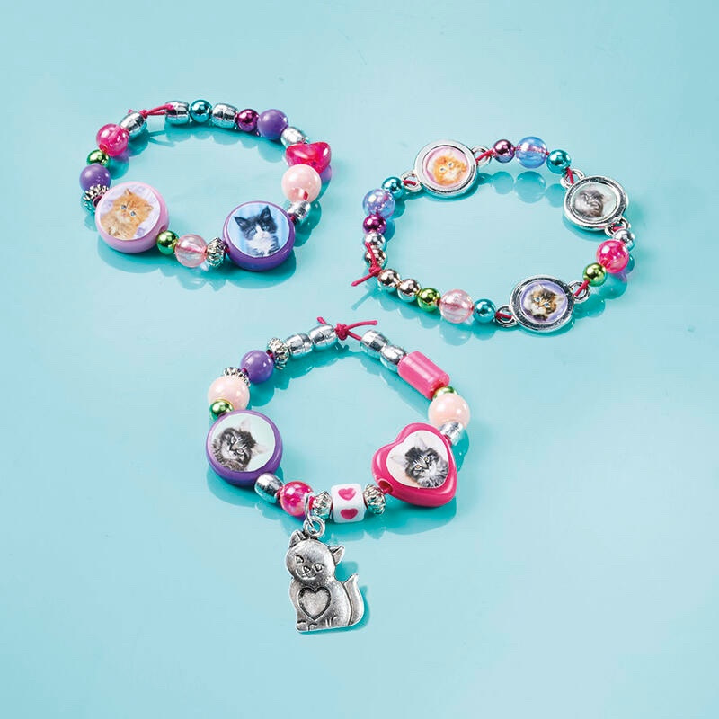 Obsahuje: 3x prívesok, 1x prívesok mačiatko, 3x priehľadná samolepka, nálepky s mačiatkami, rôzne korálky, ružové elastické vlákno, kovový krúžok a návod.