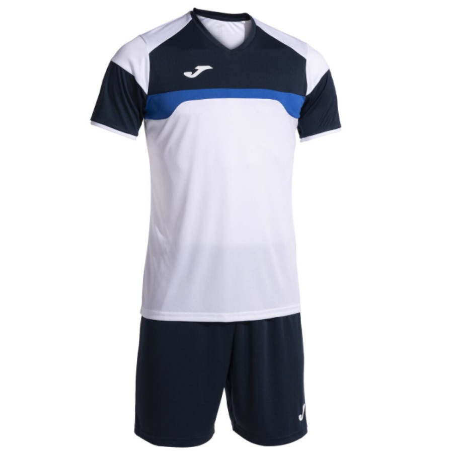 Športový set JOMA Danubio III je určený pre chlapcov a mužov. Táto sada sa skladá z trička s krátkym rukávom a šortiek vyrobených zo 100% polyesteru, ktorý je ľahký, priedušný, veľmi pohodlný a pri tréningu aj náročnom zápase poskytuje maximálnu voľnosť pohybu. Tričko má V výstrih s elastickou vnútornou páskou, vďaka ktorej sa tričko prispôsobí postave a zabraňuje možnému odreniu. Kraťasy bez vreciek majú elastický pás s vnútornou šnúrkou. - set: tričko, kraťasy