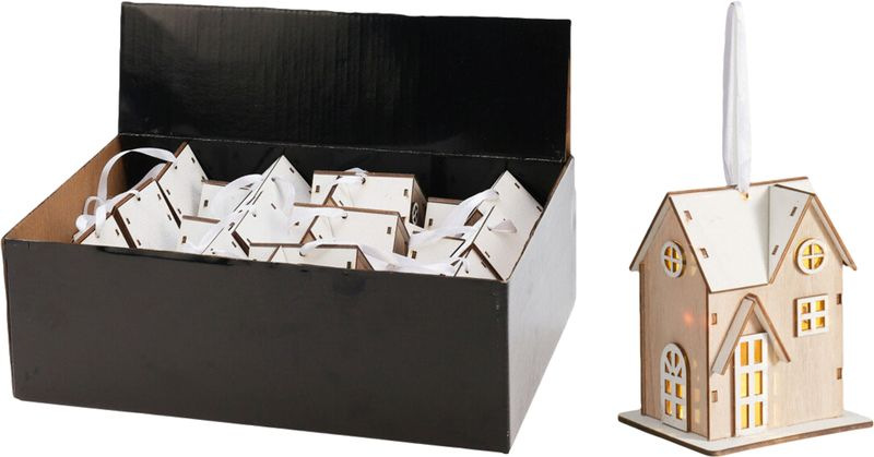 Dekorácia Domček, 3xLED, mix vzorov, Sellbox 12ks